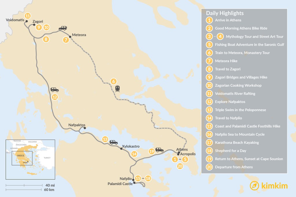 Delve into Greece’s culture and history with this 20-day adventure around the mainland. Discover Athens by bicycle, and learn about classical mythology and modern art along the way, before hiking in the mountains of Meteora and the villages of Zagori. Tackle some rapids and take a dip in the turquoise waters of the Peloponnese. Then head to Nafplio, where more hiking, biking, and some cheese-making await!