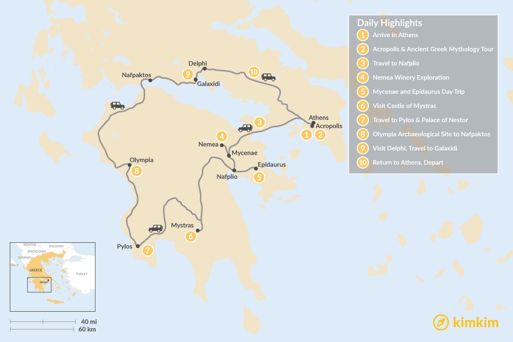 | Day 7 | Drive to Pylos, Palace of Nestor & Voidokoilia Beach | Pylos |