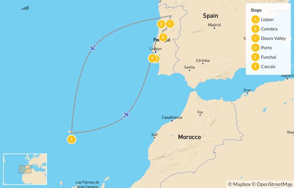 Map of Mainland Portugal & Madeira – 15 Days