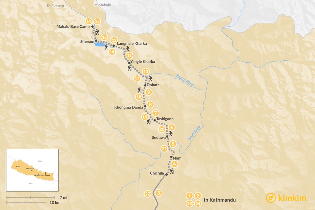 | Day 22 | Drive to Tumlingtar | 51 km./31 miles |