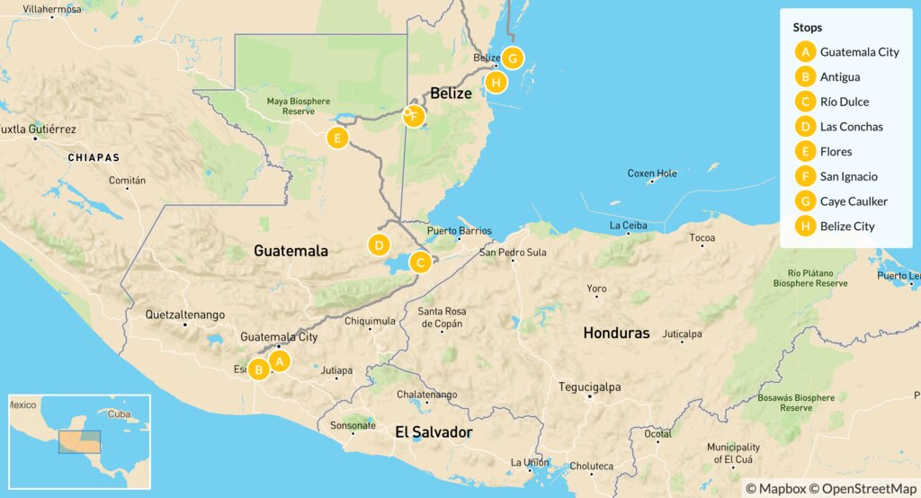 Map of Maya History in Caribbean Guatemala & Belize – 14 Days