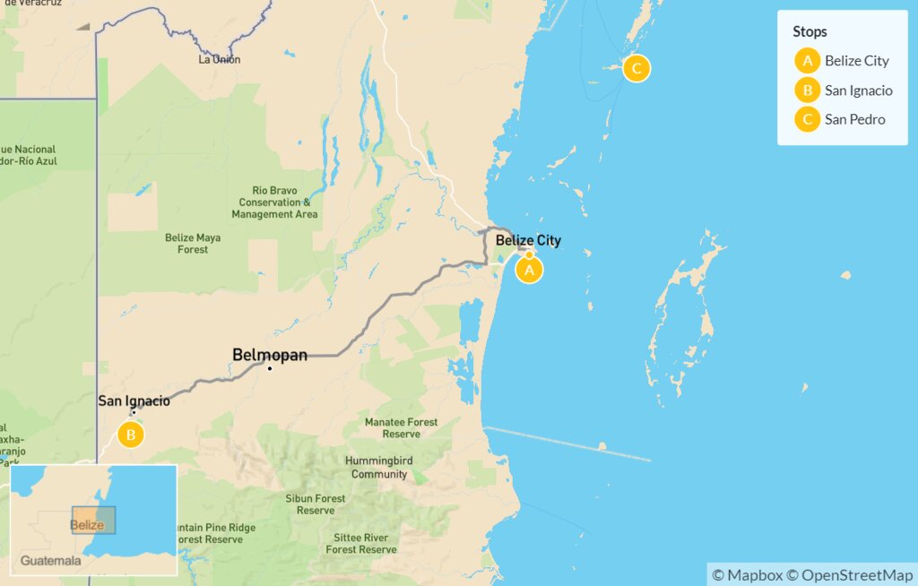 Map of Maya Ruins & Marine Life in Belize – 5 Days