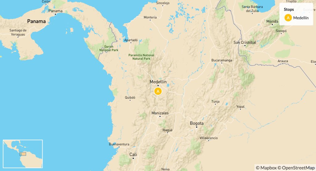 After breakfast at your hotel, you’ll transfer by car for 1.5 hours to a picturesque coffee finca (farm) located in the mountains outside of Medellín. From here, you’ll embark on a walking tour with a coffee farmer who will explain the growing process and the steps it takes for the coffee bean to reach the cup. You’ll also learn about the daily life of these farmers and how this vital trade is linked to many Colombian families, making it a source of pride for locals.