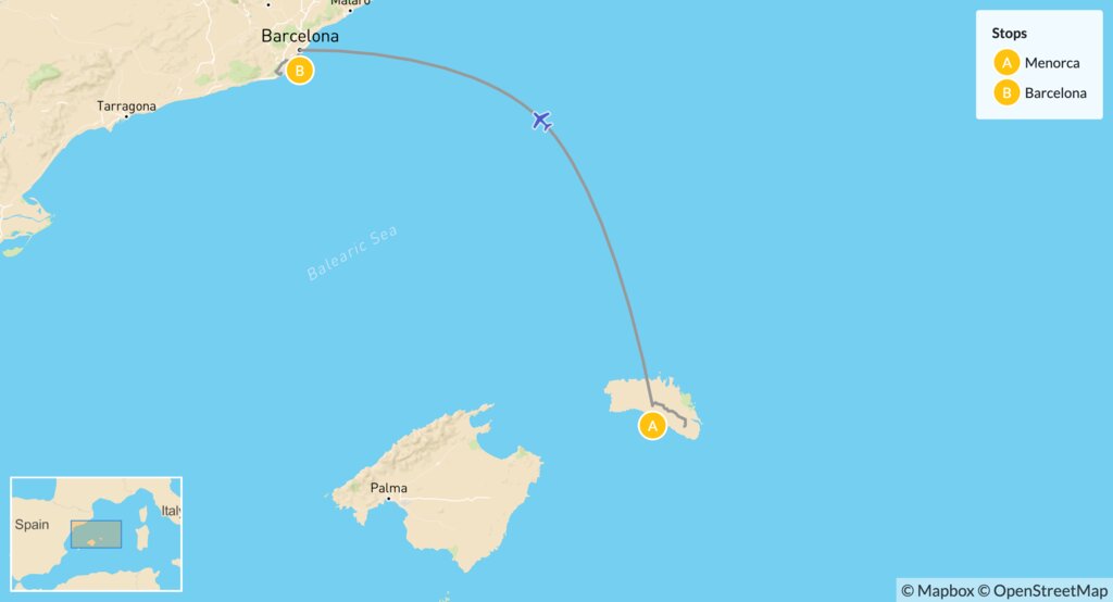 Map of Mediterranean Spain Luxury Getaway: Menorca & Barcelona – 7 Days