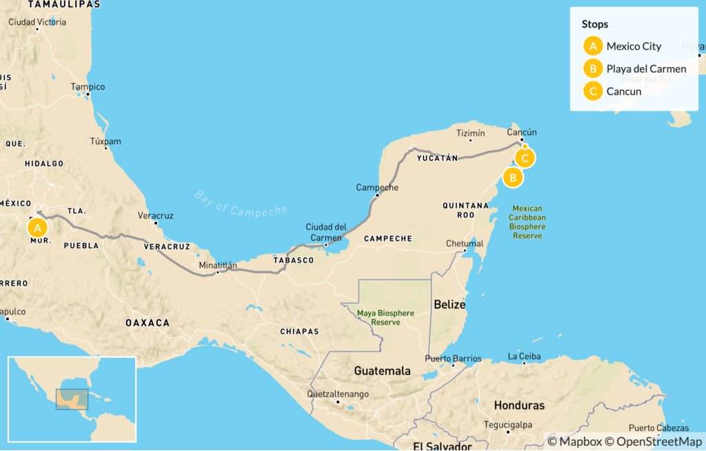 Map of Mexico Culture, Food & Beaches: Mexico City & Playa del Carmen – 8 Days