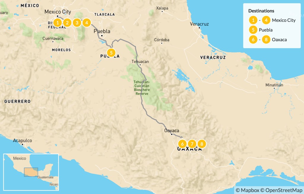 Map of Mexico’s Culture & Gastronomy Tour – 9 Days