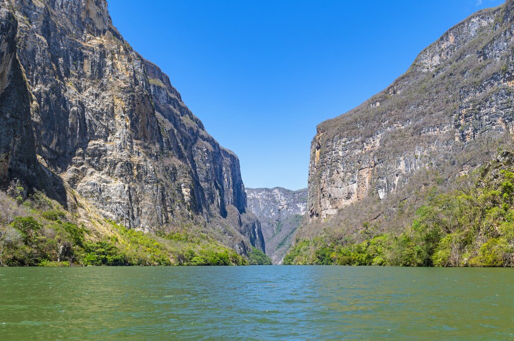 After breakfast, your driver will pick you up for a half-day trip to Sumidero Canyon and Chiapa de Corzo. Head toward the islet of Cahuare, where you’ll board a motorboat to navigate along the imposing canyon, a natural formation that dates back 136 million years. Admire its walls soaring high above the Grijalva River amid thick vegetation. During the journey, you’ll see diverse wildlife, flora, and fauna, including bromeliads, pines, river crocodiles, and spider monkeys. Later, continue to charming Chiapa de Corzo for lunch, where you can taste the ancestral Maya beverage pozol con cacao.