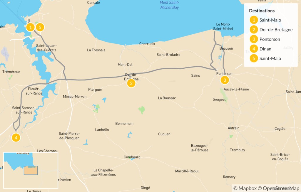| Day 5 | Dinan to Saint-Malo | Saint-Malo |