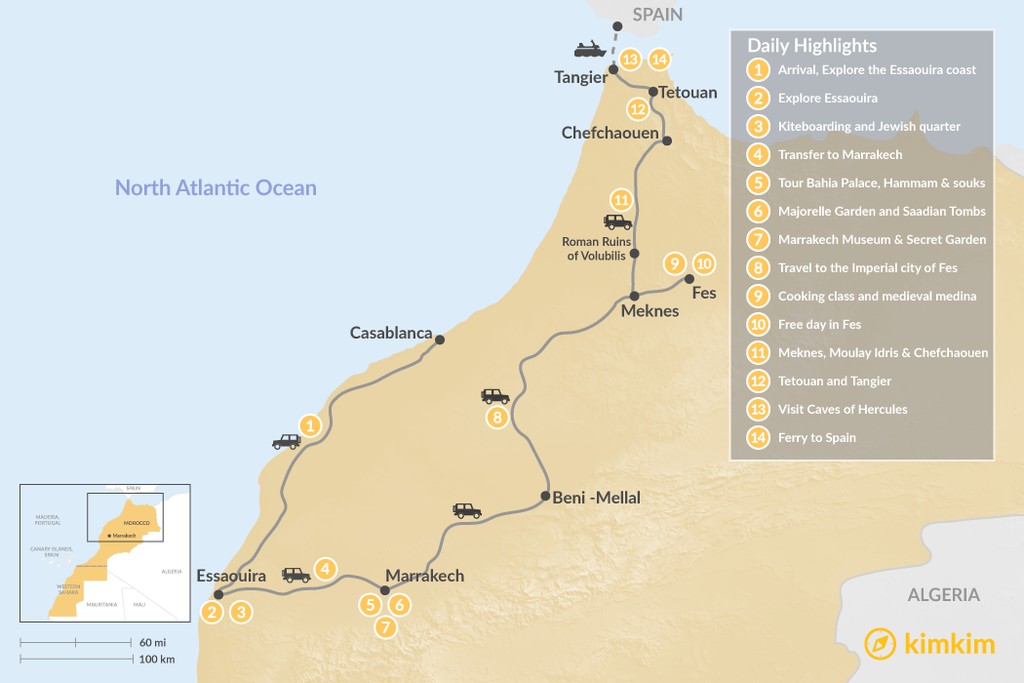 Map of Moroccan Cities from Coast to Coast – 14 Days