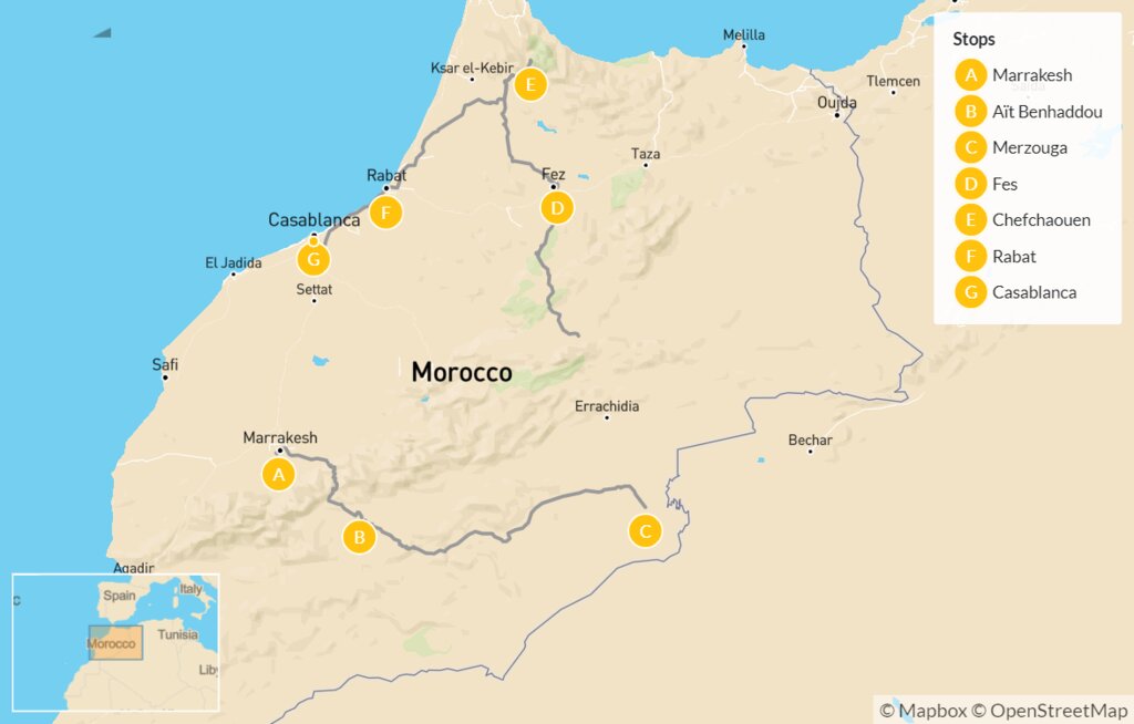 Map of Morocco at a Glance: From Marrakesh to Casablanca via the Sahara – 10 Days