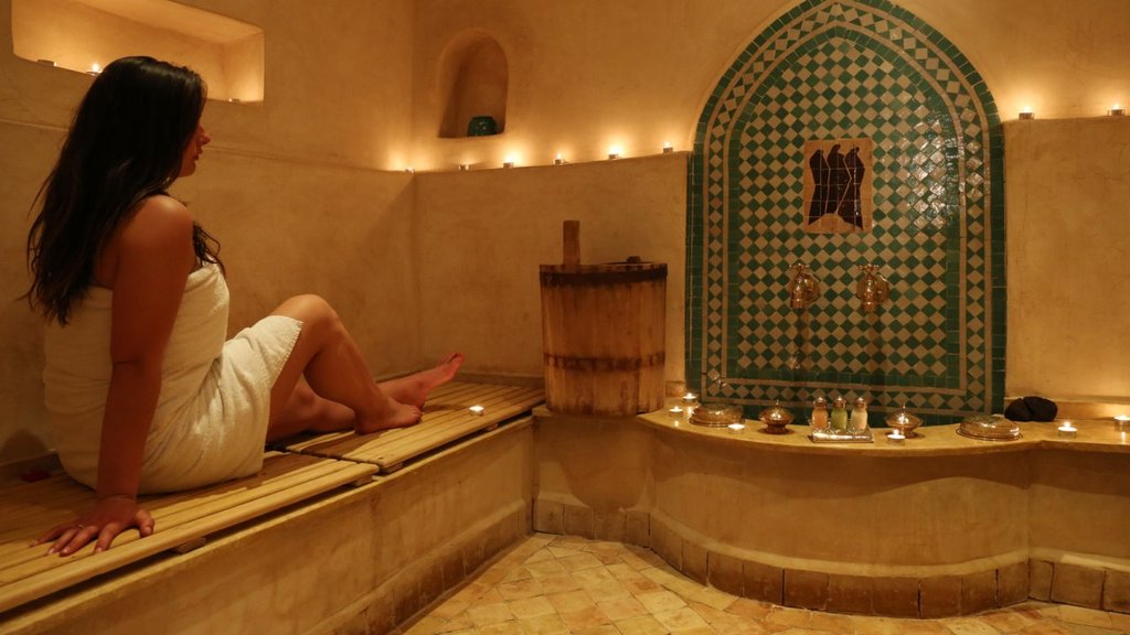 Start in a warm, dry room to relax and allow your body to get used to the heat before entering an even warmer room, and then a steam room. Your attendant will set aside your towel, and after a few minutes, you’ll be ready to start the next stage. The attendant will apply black olive-oil soap, known as savon beldi, to your body, and you will be scrubbed with a kessa loofah. Much rinsing and scrubbing will follow, helping you clean your skin and get the stress out. Remember the phrase “ghi bshwiya,” which means “a bit softly, please!”