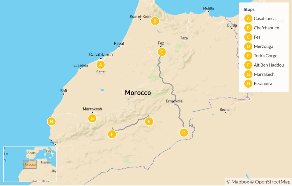 Map of Morocco for Families: Fes, Marrakech & Essaouira – 15 Days