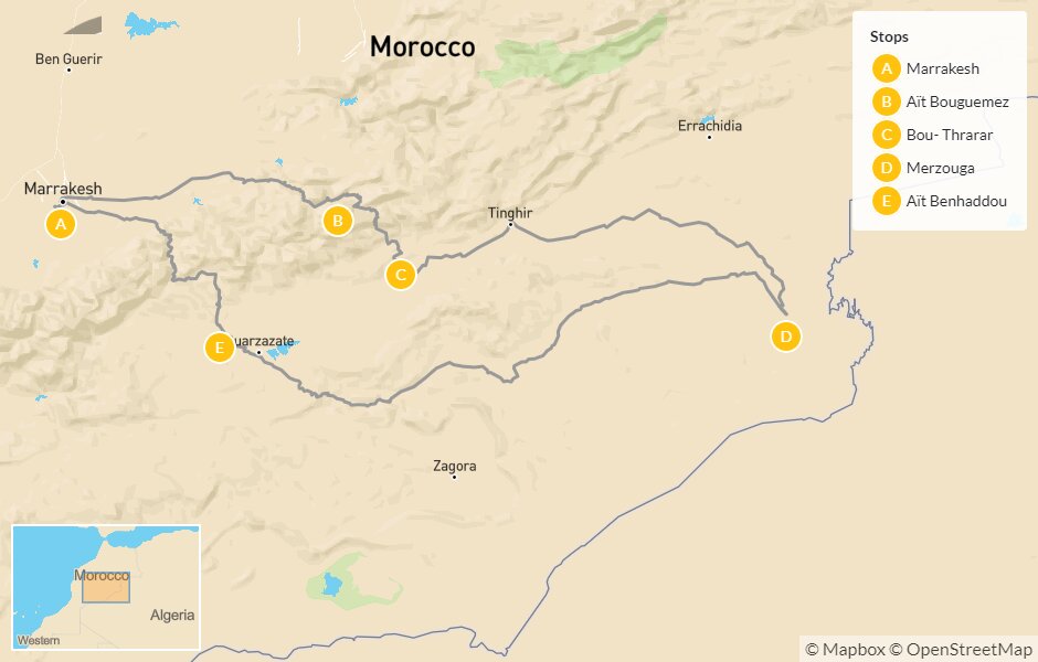 Map of Morocco’s Atlas Mountains & Sahara Desert – 11 Days