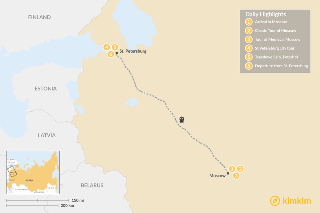 Map of Moscow and St. Petersburg Highlights – 6 Days