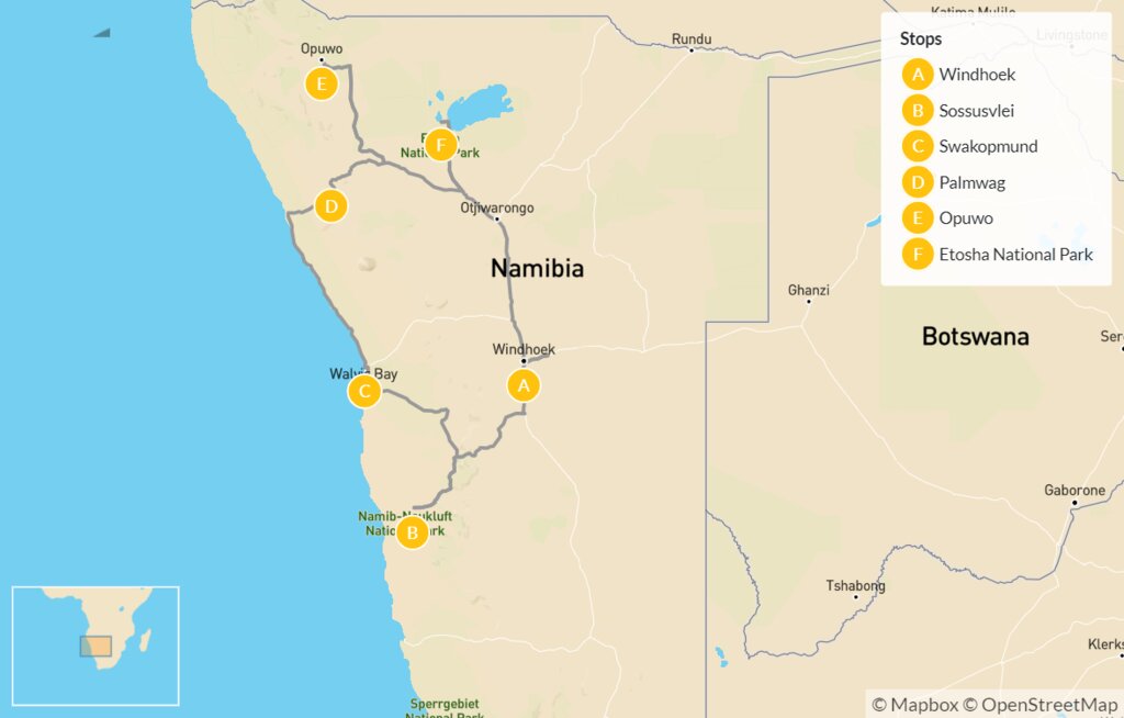 Map of Namibia Safari Road Trip – 12 Days