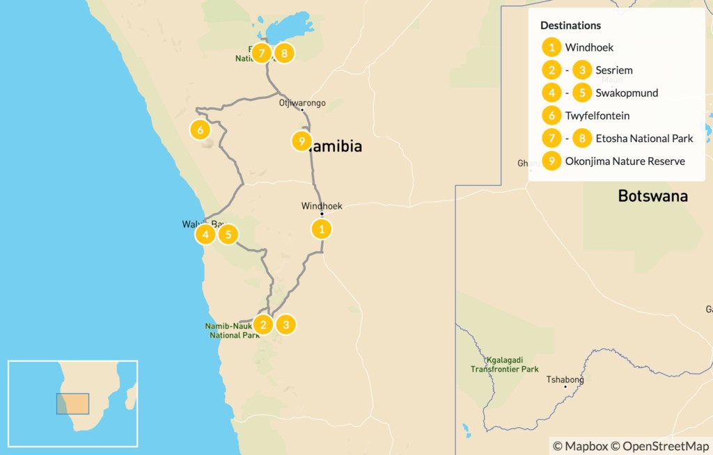 | Day 1 | Arrive in Windhoek | Windhoek |