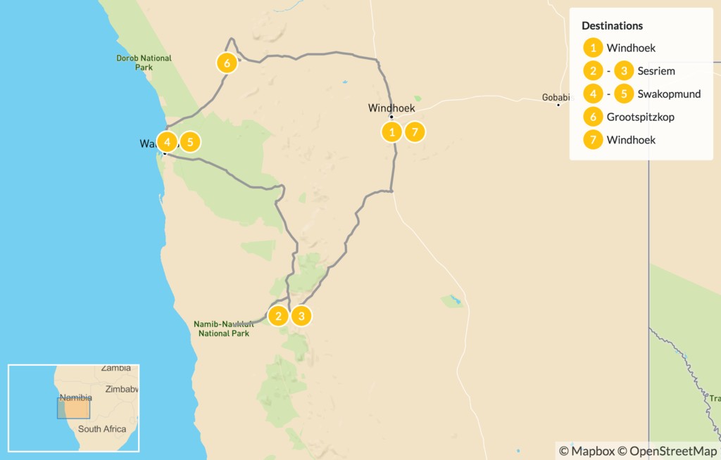 | Day 7 | Drive from Spitzkoppe to Windhoek | Windhoek |