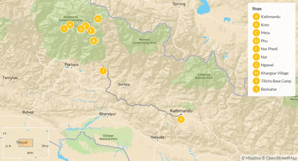 Map of Nar, Phu & Tilicho Lake Trek – 12 Days