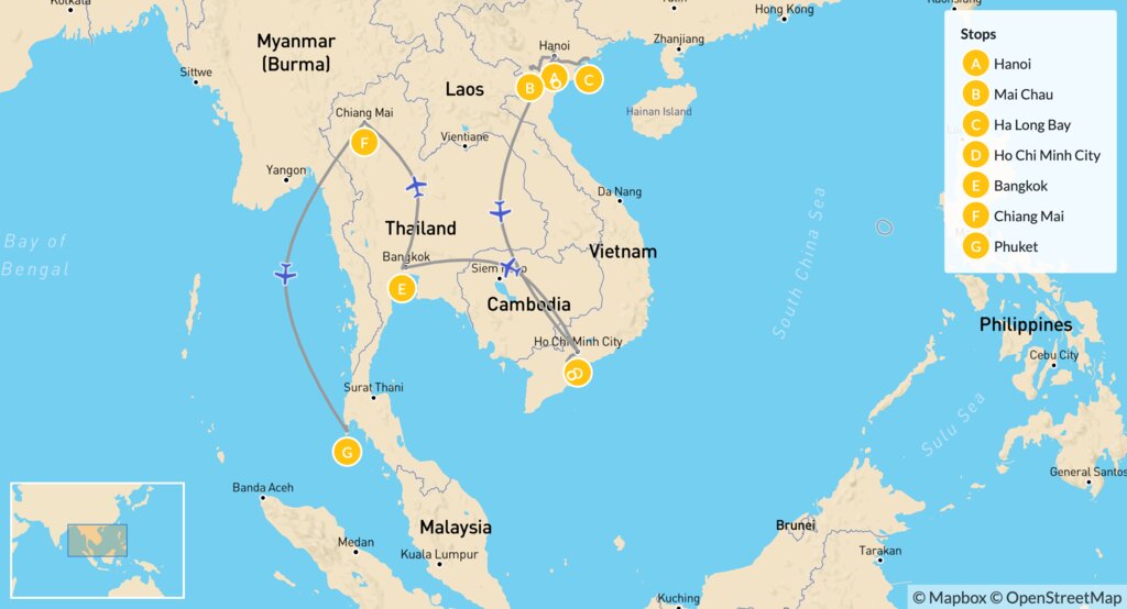 Map of Natural Treasures of Vietnam & Thailand – 14 Days