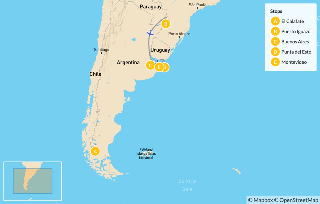 Map of Natural Wonders of Argentina & Uruguay – 14 Days