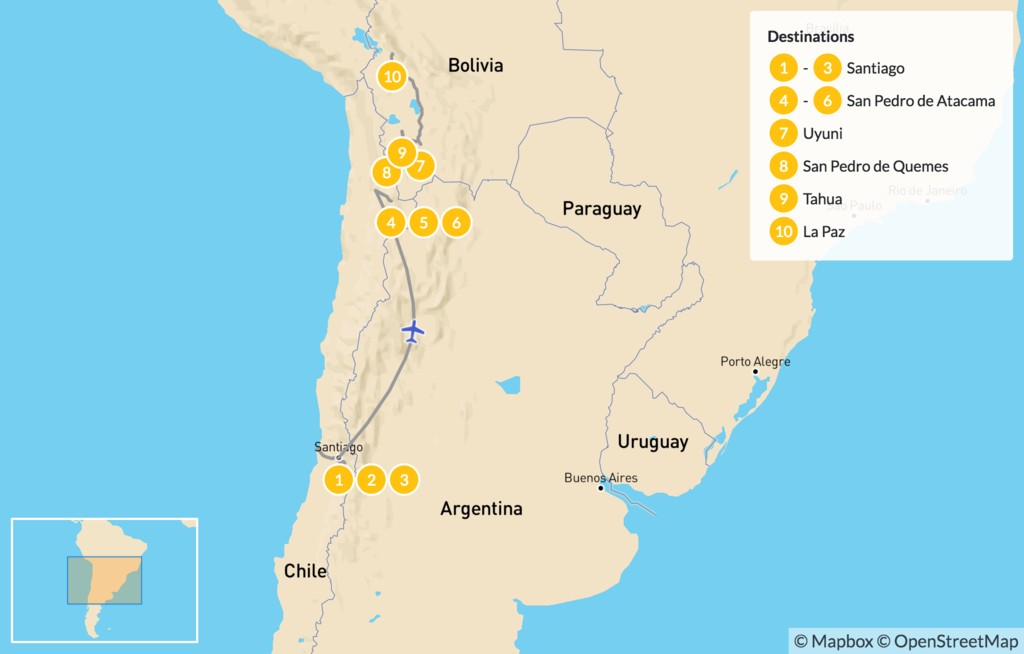 Map of Natural Wonders of Chile & Bolivia – 11 Days
