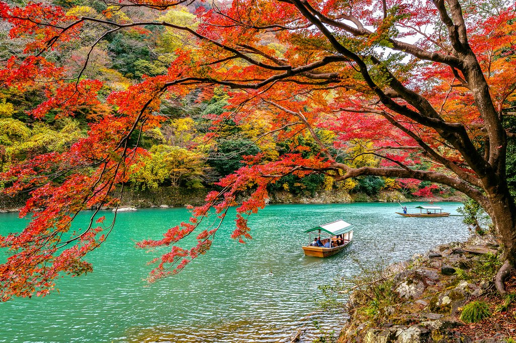 Just outside Kyoto is the tranquil area of Arashiyama. You will start your day with a ride on an open-air train that offers amazing views of the river and the surrounding forest. (Note: This train does not operate in the winter months.) You’ll then travel down the Hozugawa River on a traditional Japanese boat. This activity is often the highlight of the trip, and depending on the season, you’ll be floating past white and pink cherry blossoms (in March), the deep green leaves of a warm summer (in July), or the brilliant and fiery colors of autumn trees (in November).