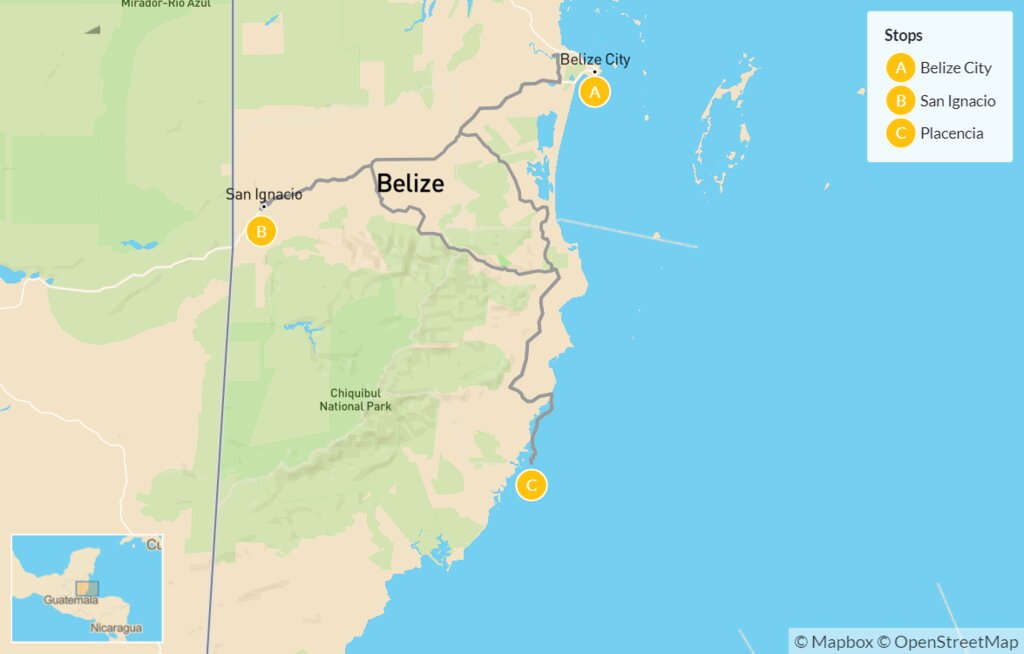 Map of Nature & Adventure in Belize: San Ignacio & Placencia – 7 Days