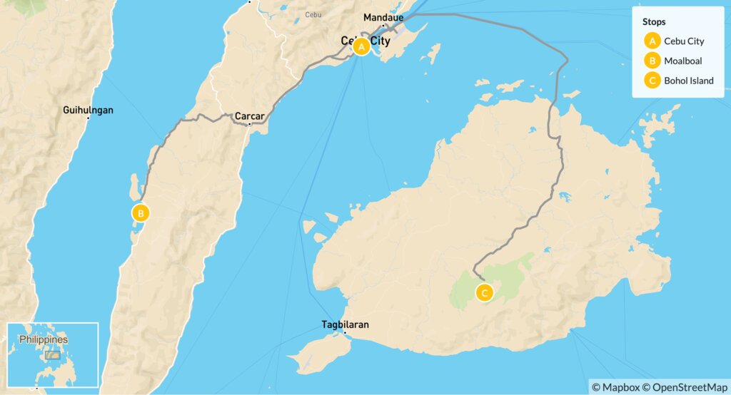 Map of Nature & Adventure in the Philippines: Cebu City, Moalboal & Bohol – 10 Days