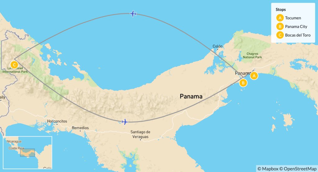 Map of Nature & Beaches in Panama City & Bocas del Toro – 10 Days