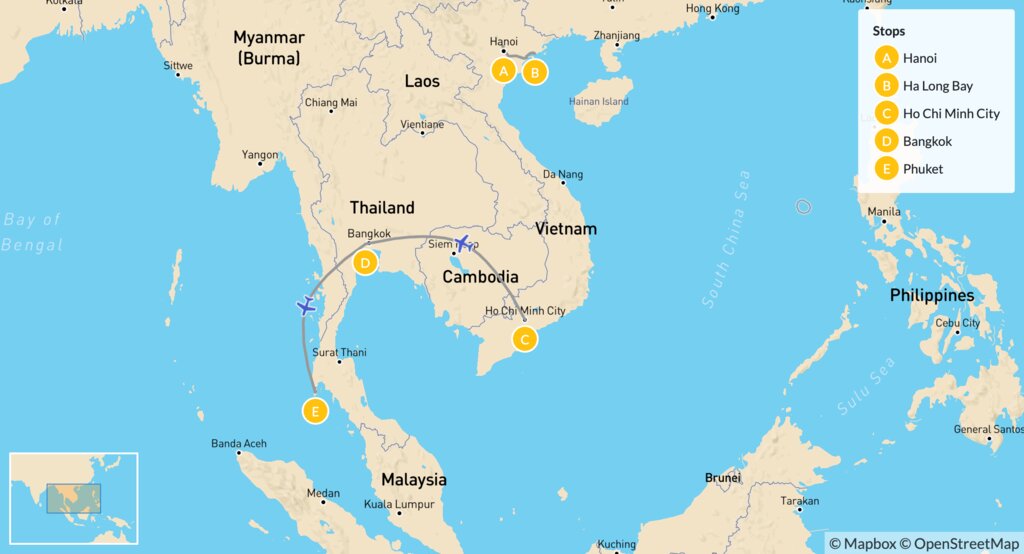 Map of Nature, History & Culture in Vietnam & Thailand – 14 Days