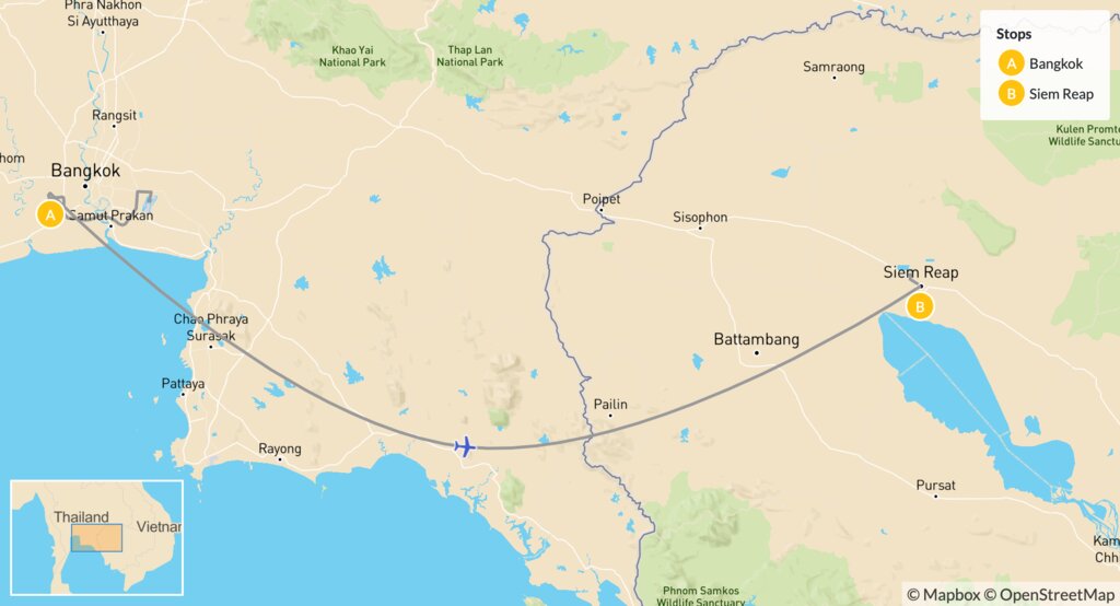 Map of Nature & History in Thailand & Cambodia: Temples, Waterfalls & Lakes – 7 Days