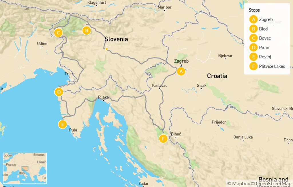 Map of Nature & Outdoor Adventure in Croatia & Slovenia – 14 Days