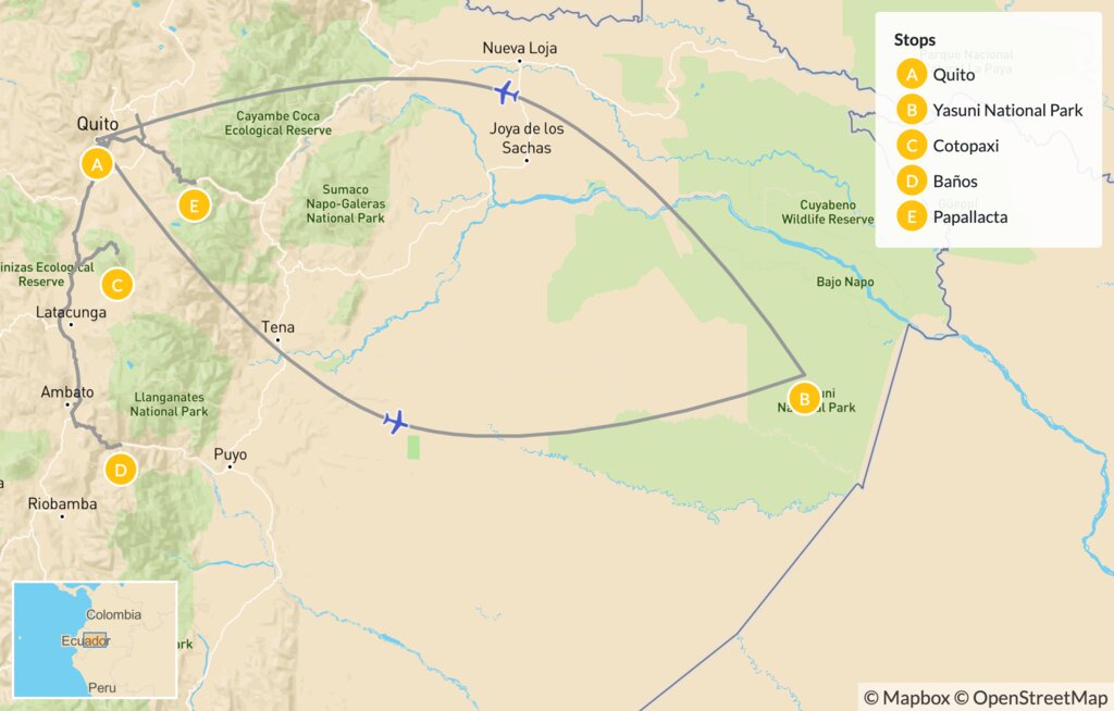 Map of Nature & Relaxation in Ecuador: National Parks, Waterfalls & Hot Springs – 9 Days