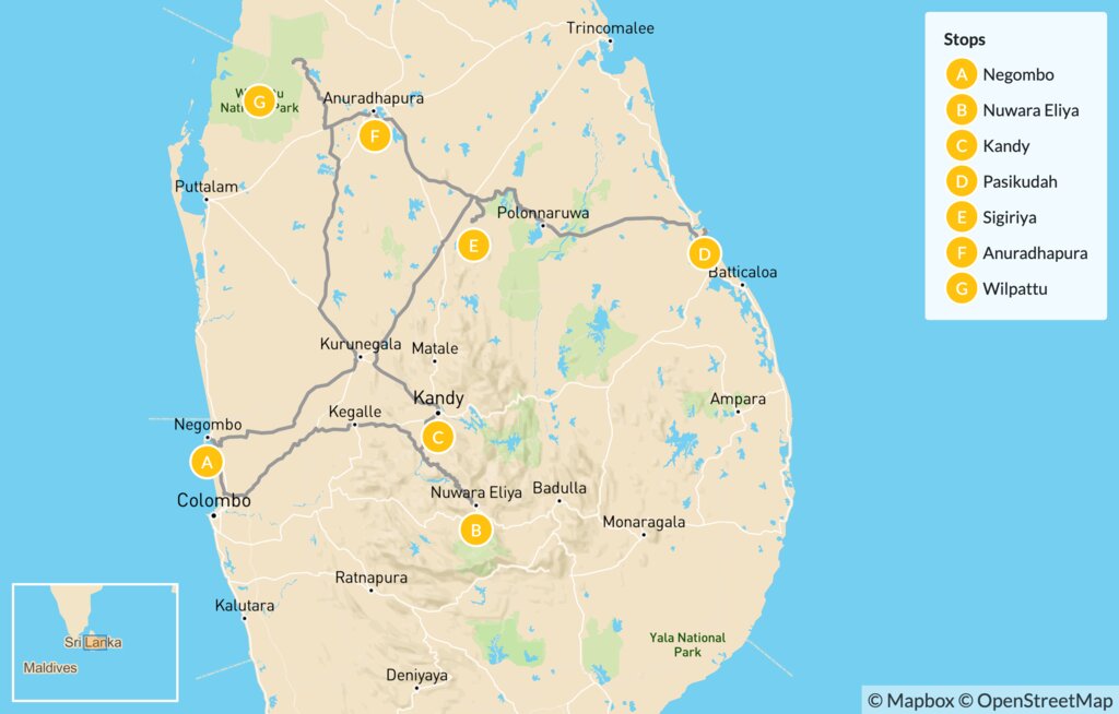Map of Nature & Serenity in Sri Lanka – 13 Days