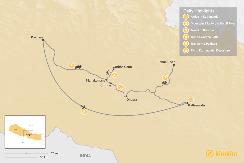 Map of Nepal Multi-Sport Adventure – 6 Days