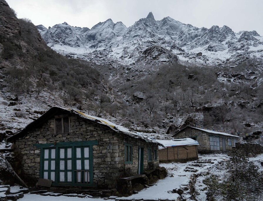 The ascent continues! Set off from Kothe this morning on a rugged four-hour hike further up into the mountains. The four-hour journey will take you along the Hinku Khola ridge, in the shadow of Mera Peak. On the way, you’ll pass by Gondishung, a summer yak-herding community on the west bank of Hinku Drangka River. From there, you’ll pass another incredible landmark: Lungsumbga Gompa, a Buddhist monastery dating back 200 years. Finally, after a brief stroll from Lungsumbga, you’ll reach Tagnag, an area used for summer grazing dotted with a few historic lodges and stores.