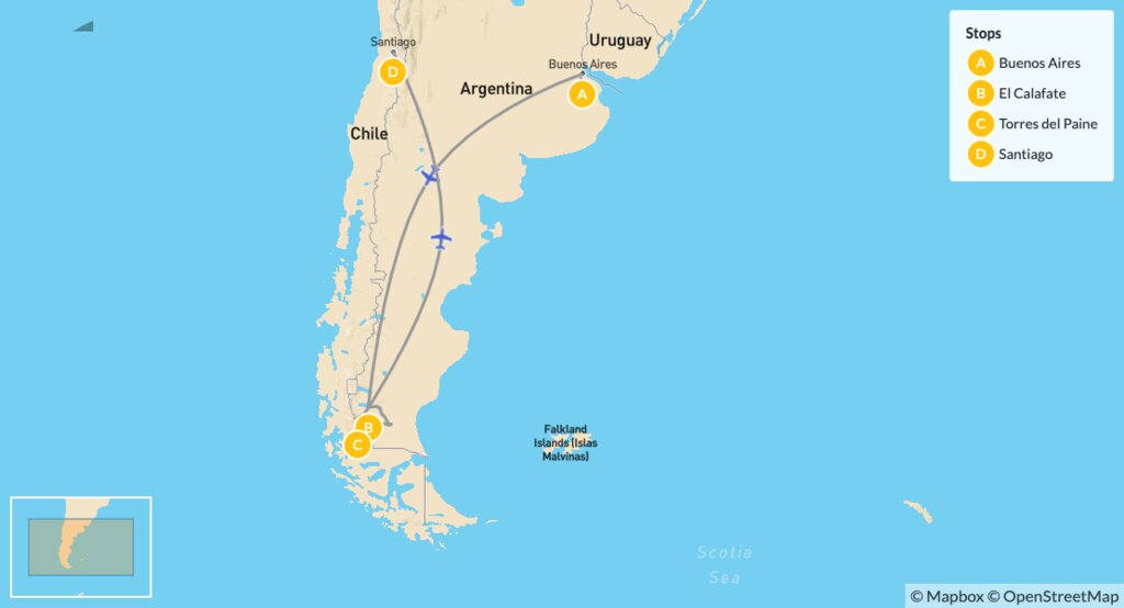 Map of New Year Nature & Adventure in Patagonia – 10 Days