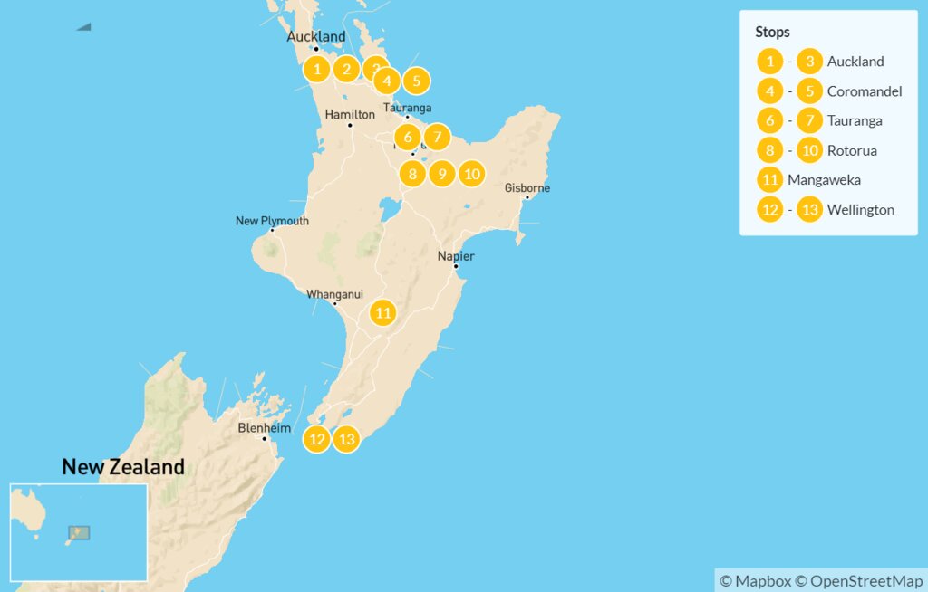 Map of New Zealand North Island Adventure – 14 Days
