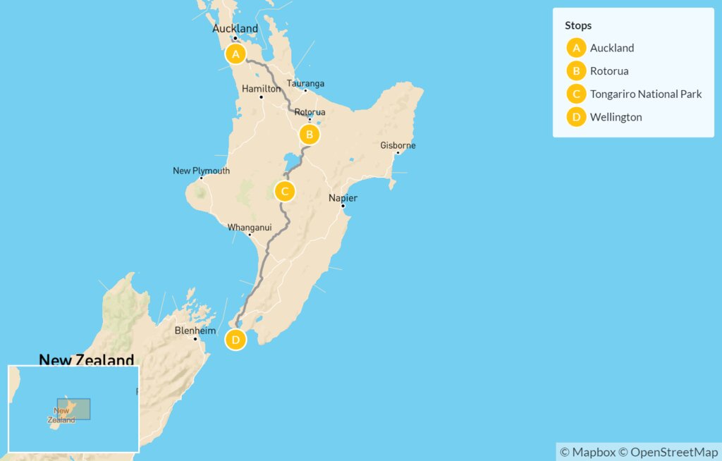 Map of New Zealand North Island Road Trip: Auckland to Wellington – 8 Days