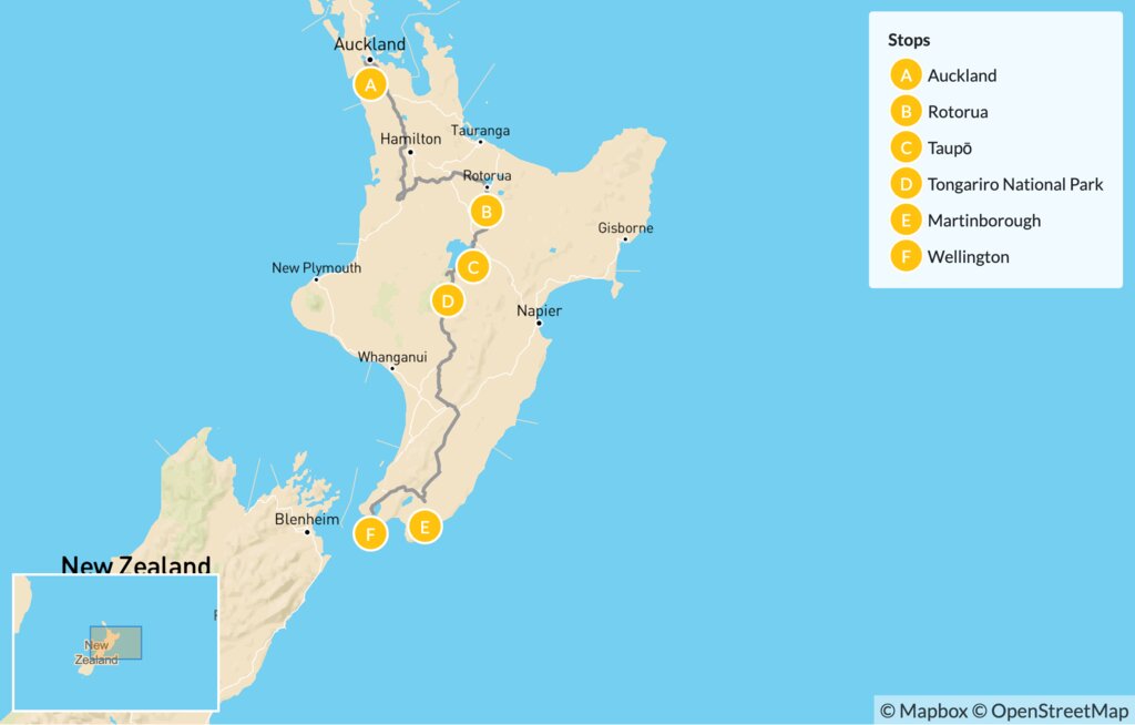 Map of New Zealand North Island Self-Drive Tour: Auckland to Wellington – 11 Days