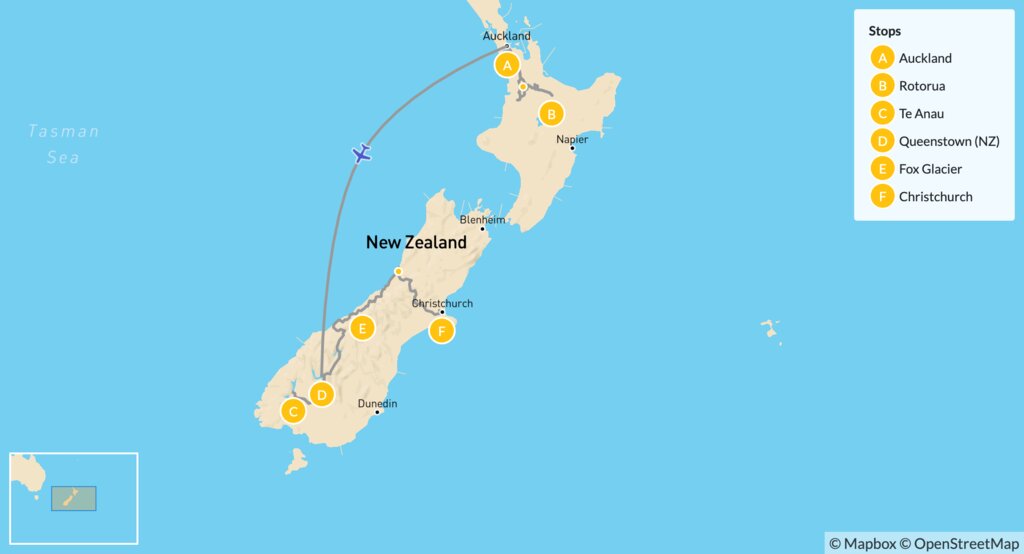 Map of New Zealand Panorama: Auckland to Christchurch – 17 Days