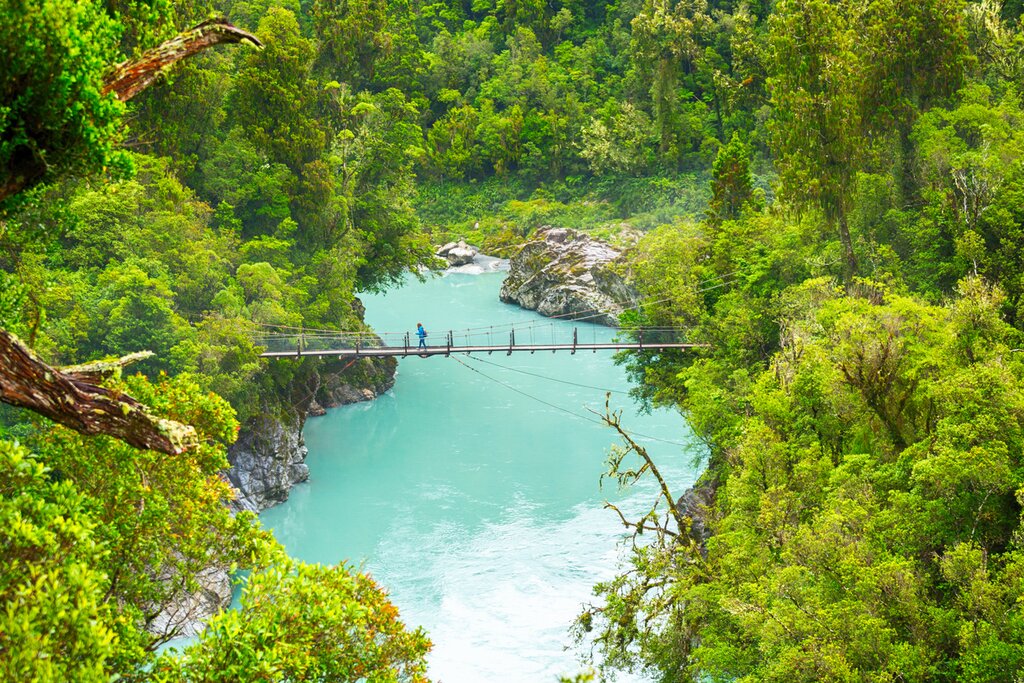 Leaving Greymouth today, you’ll drive 3.5 hours south to get to Franz Josef / Waiau and Glacier Country. Pass through Hokitika and be sure to take a detour to the spectacular Hokitika Gorge, a turquoise-colored river surrounded by native bush-clad cliffs. Continue on through Ross, a historic gold mining town where several buildings still remain intact. As you travel farther down the coast, you’ll also go through Hari Hari, the town where Guy Menzies, the first person to fly solo over the Tasman, crash-landed. Follow the coast through several more small towns before catching a glimpse of Franz Josef / Waiau Glacier as you arrive in the town center.