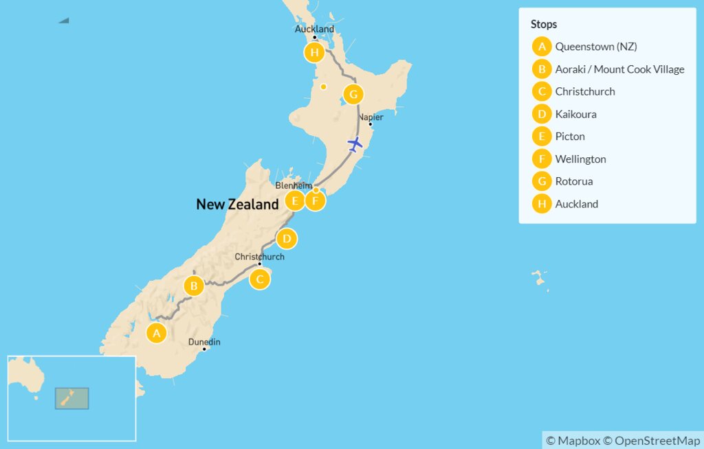 Map of New Zealand Winter Discovery – 14 Days