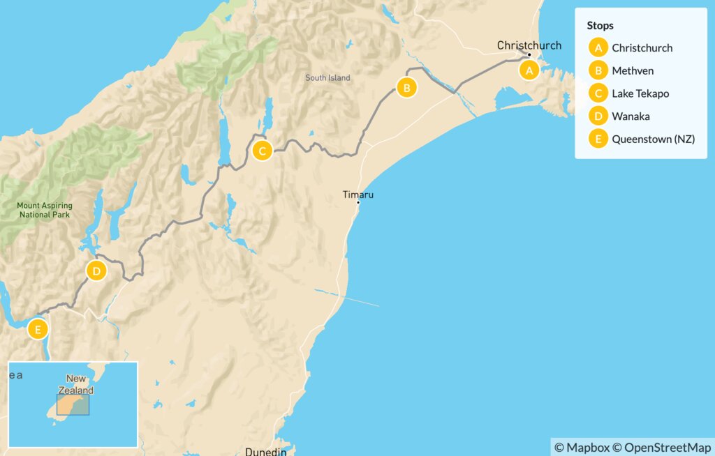 | Day 1 | Arrive in Christchurch | Christchurch |