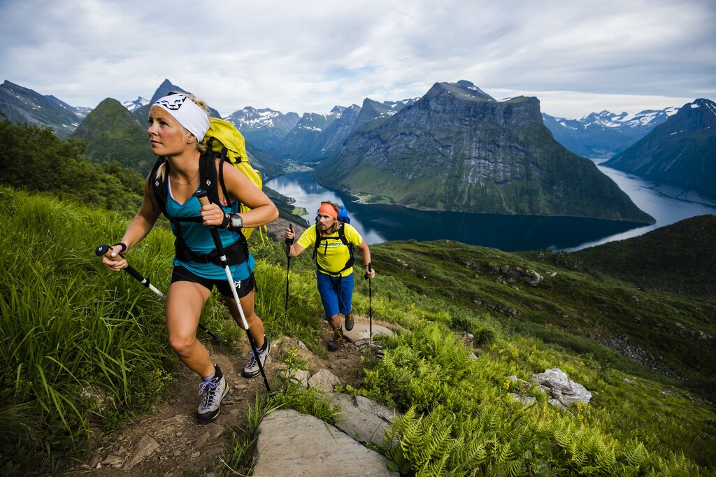 Afterward, leave the kayak behind and lace up your boots for a jaunt along the region’s most famous hike: the Fosseråsa National Trail. Packed with memorable scenery, this route will take you from the center of Geiranger up to Storsæterfossen, an epic waterfall nestled in the mountains at 1,804 feet (550 m) above sea level. The route is divided into three sections, with the first two leading up past hillside farms—keep an eye out for wildlife like red squirrels and deer—on stone steps built by Nepali Sherpas.