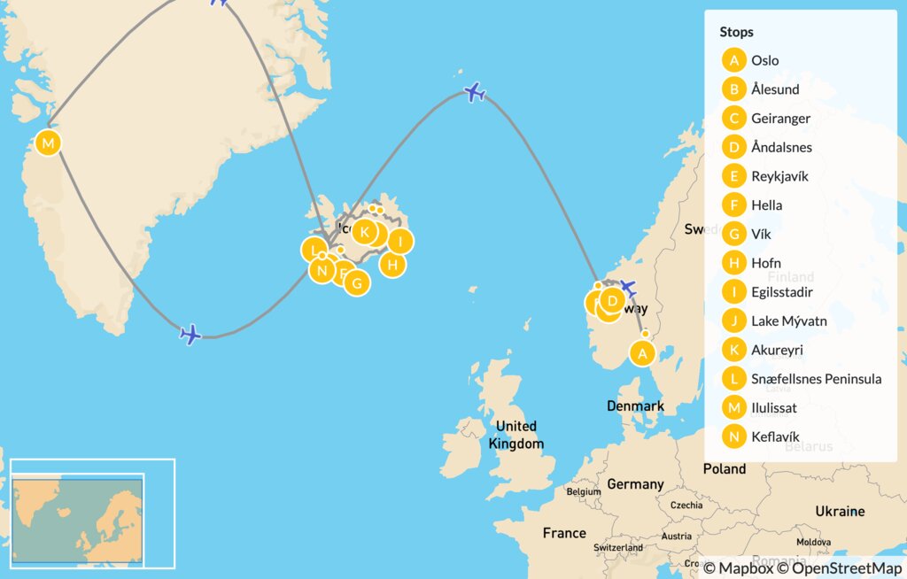 Map of Nordic Harmony: Ultimate Summer Journey to Norway, Iceland & Greenland – 21 Days