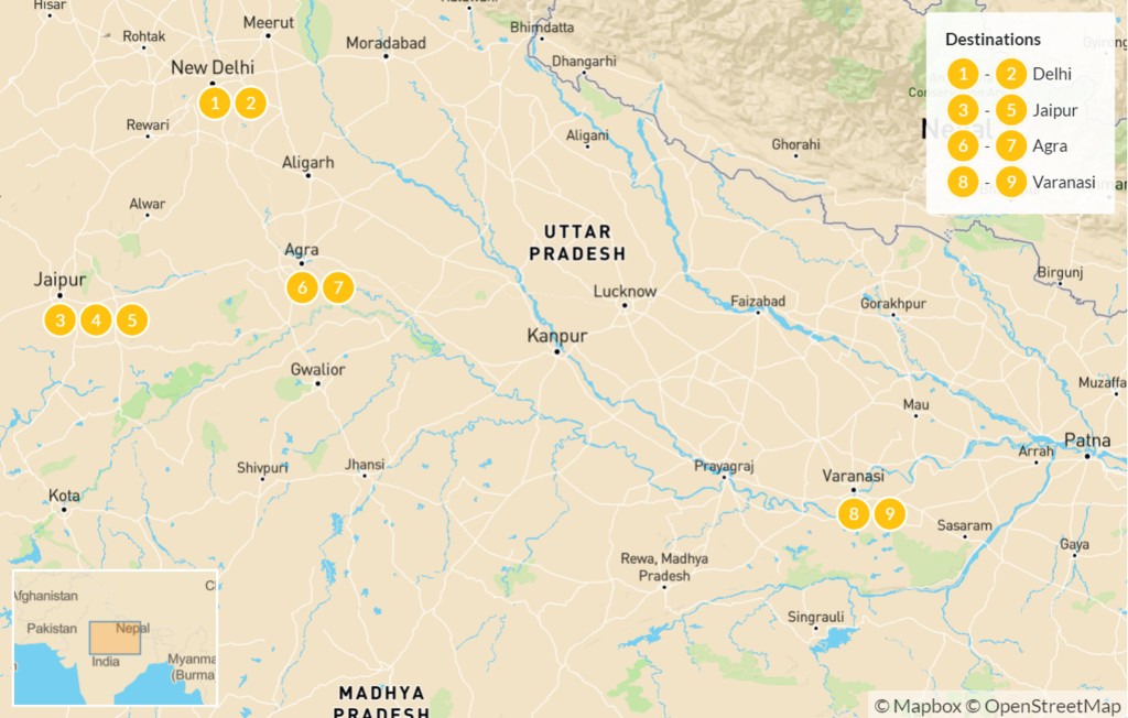 | Day 8 | Travel to Delhi Airport and Fly to Varanasi | Varanasi |