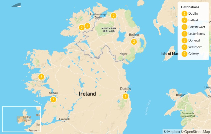 Map of North Ireland Road Trip: Belfast, Donegal & Galway – 8 Days