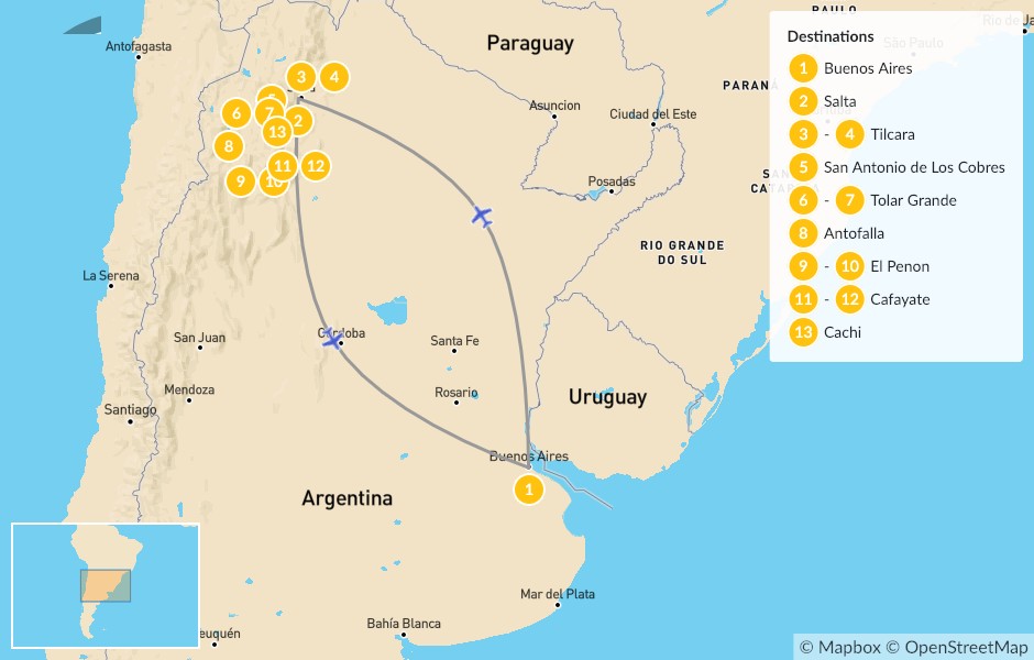 And just like that, your two-week sojourn in northern Argentina has concluded. Enjoy one last breakfast in Salta, after which you’ll transfer to the airport for the flight back to Buenos Aires, where you’ll catch your return flight home. ¡Buen viaje!