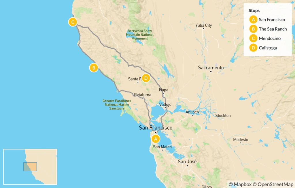 Map of Northern California Coast and Wine Country Road Trip – 7 Days